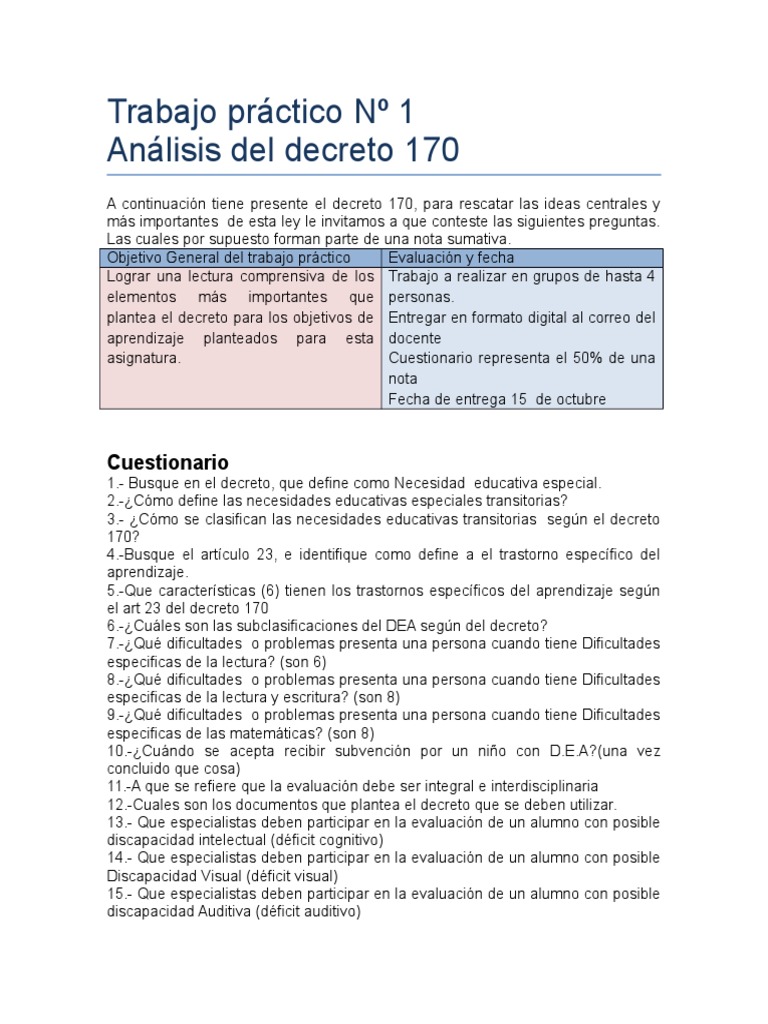 Decreto 170 Imagenes - Decreto 170 Con Preguntas Guia Desorden Hiperactivo Y Deficit De Atencion Manual Diagnostico Y Estadistico De Los Trastornos Mentales