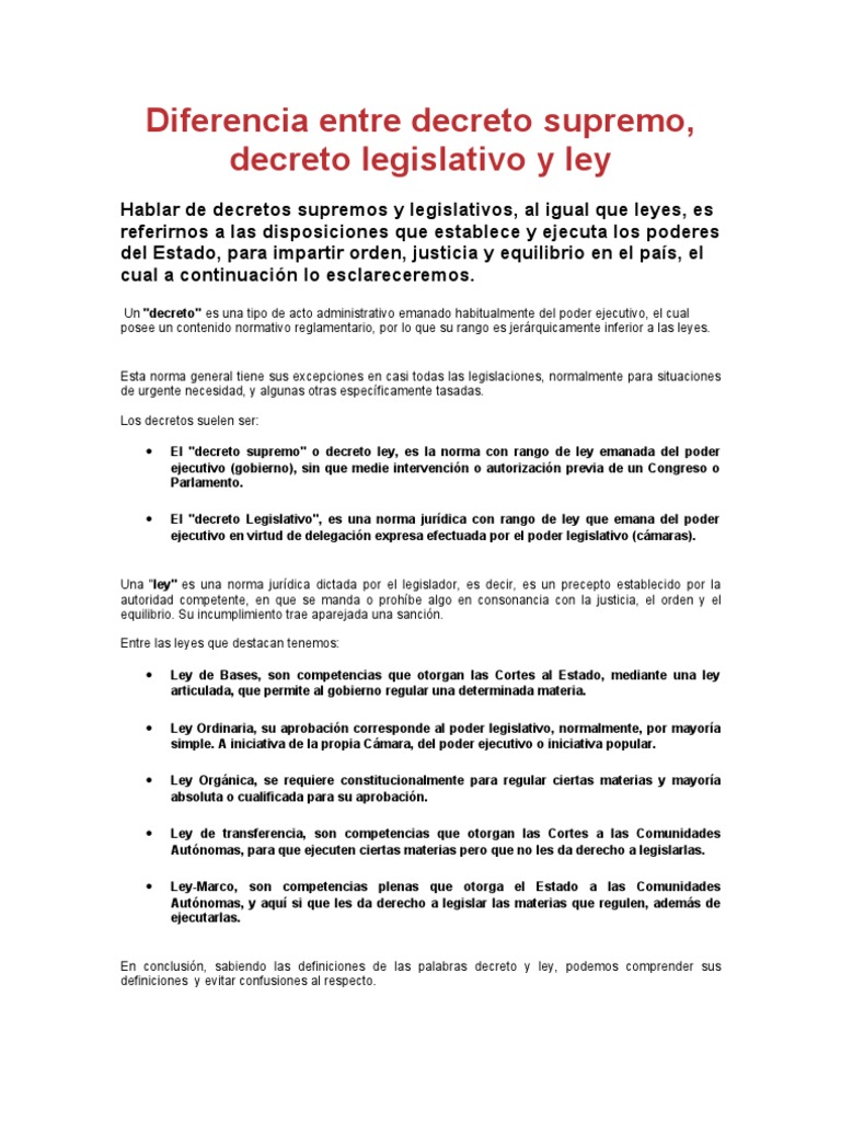 Decreto Ley Decreto Legislativo - Diferencia Entre Decreto Supremo